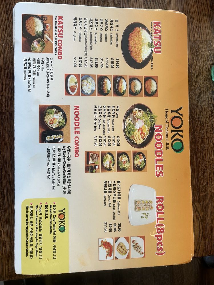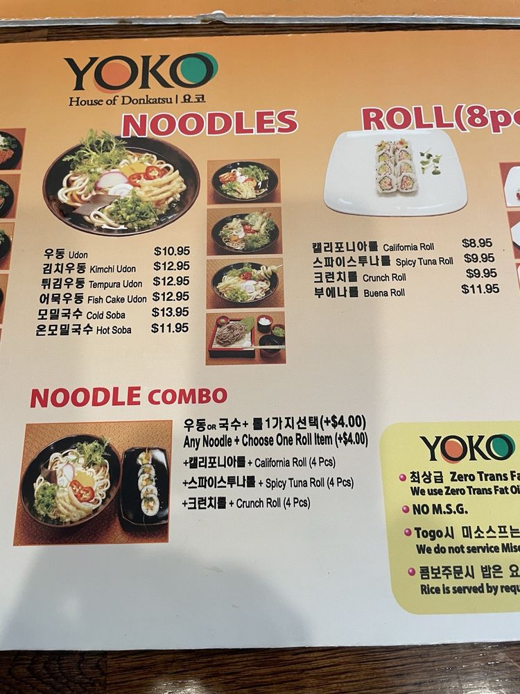 Yoko Menu (Update 2025)